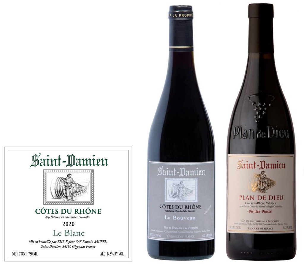Vinerna från Domaine Saint Damien är genomgående eleganta, smakrika viner med stor personlighet. Man producerar två toppviner, Gigondas från två vingårdar som står ut, Les Souteyrades och Les Louisiane. Två viner som för varje årgång räknas till de absolut bästa från Gigondas. Men gör en generisk Gigondas och två Côte du Rhône från vingårdar utanför Gigondas. Sedan 2012 är man certifierad ekologisk vinproducent. Saurels samarbetar sedan 1998 med Philippe Cambie, den klarast lysande stjärnan bland vinkonsulter i södra Frankrike.